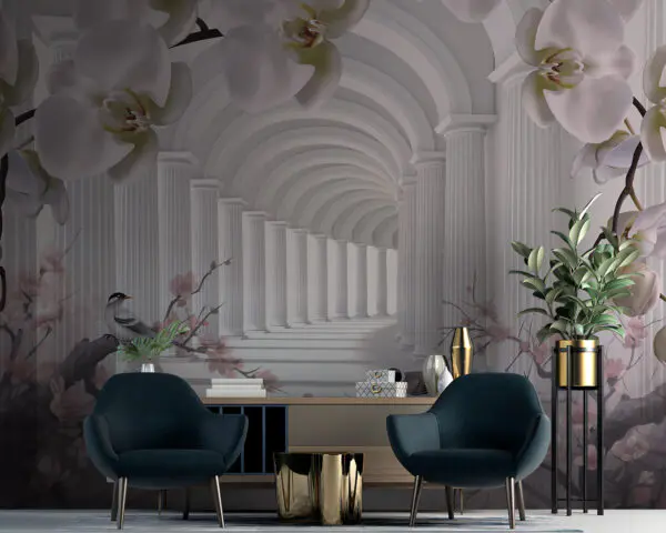14.60 €8.76 €Fotomurales Arco blanco con columnas y pájaros blancos