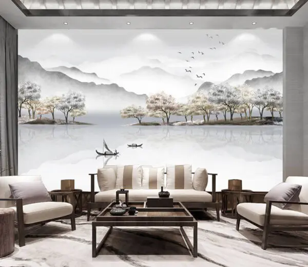 14.60 €8.76 €Fotomurales Pintura de un lago con árboles y montañas