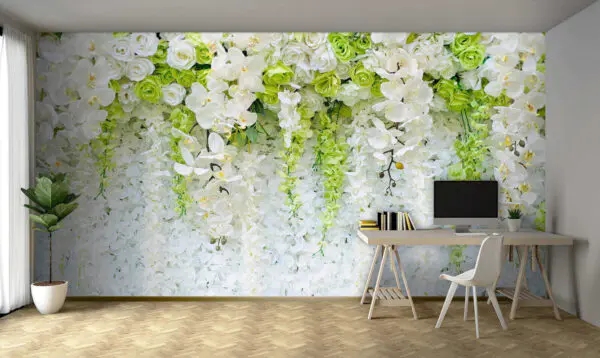 14.60 €8.76 €Fotomurales Pared blanca con flores y hojas