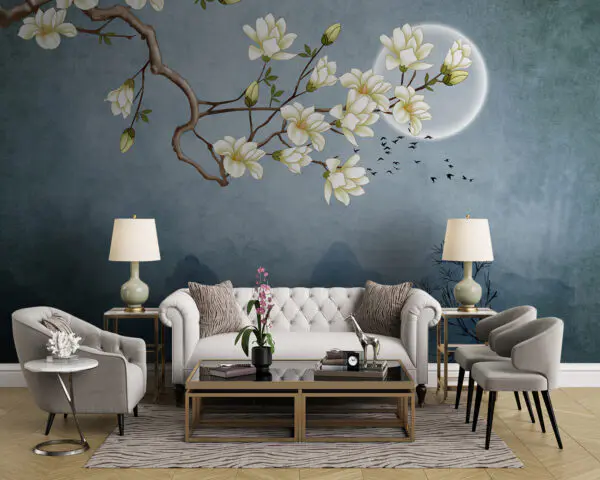 14.60 €8.76 €Fotomurales Rama de árbol con flores rosas y pájaros volando