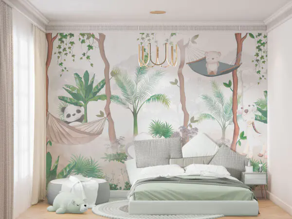 Fotomurales Fotomurales Un papel pintado con animales en hamacas en el bosque (SKU: u98163)
