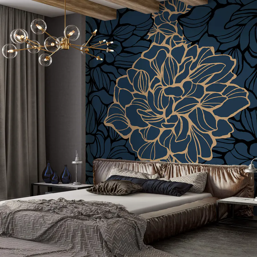 Fotomurales Diseño floral atrevido sobre fondo oscuro