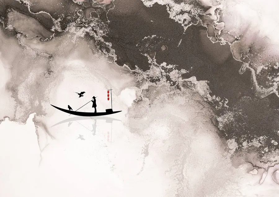 Fotomurales Silueta de un hombre en un barco con un pájaro encima