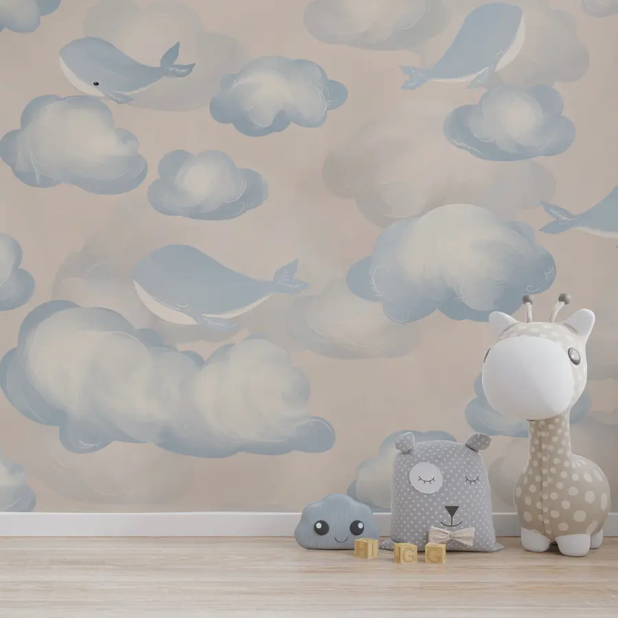Fotomurales Nubes azules y blancas y ballenas