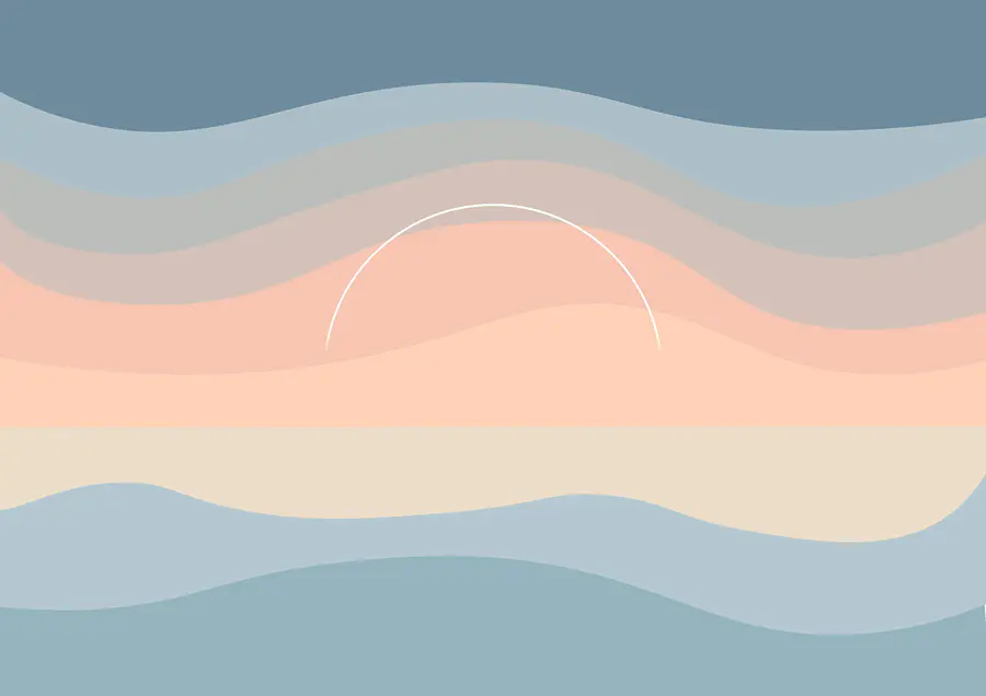 Fotomurales Olas de colores con un círculo blanco en el cielo