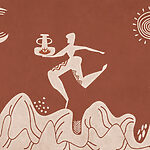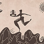 Fotomurales Dibujo de un hombre que sostiene una olla y una maceta en una montaña