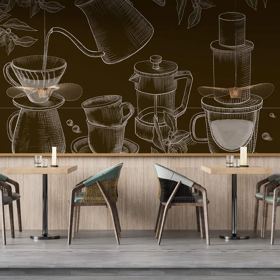 Fotomurales Dibujo de cafetera y cafetera