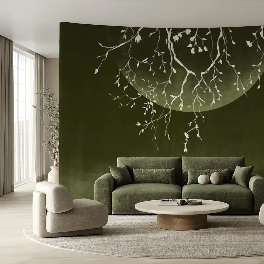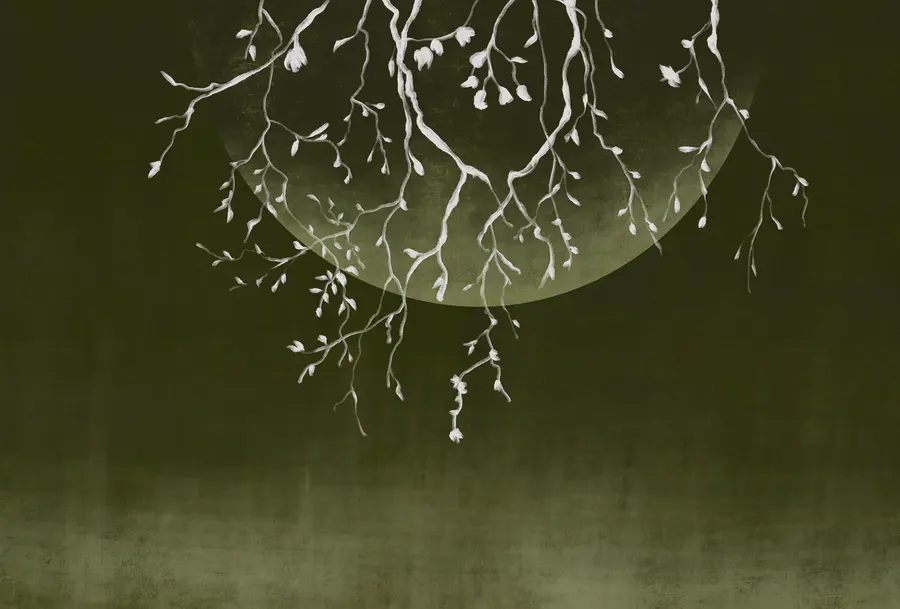 Fotomurales Ramas de árbol con hojas y una luna