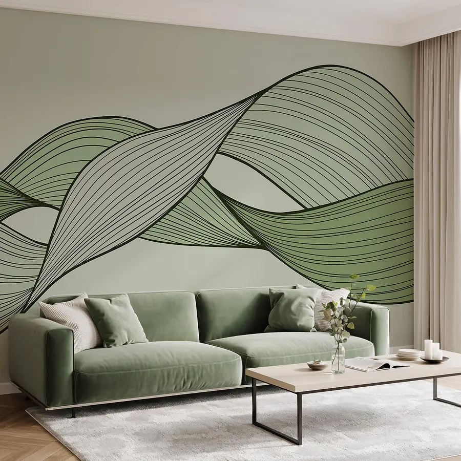 Fotomurales Líneas onduladas verdes y negras