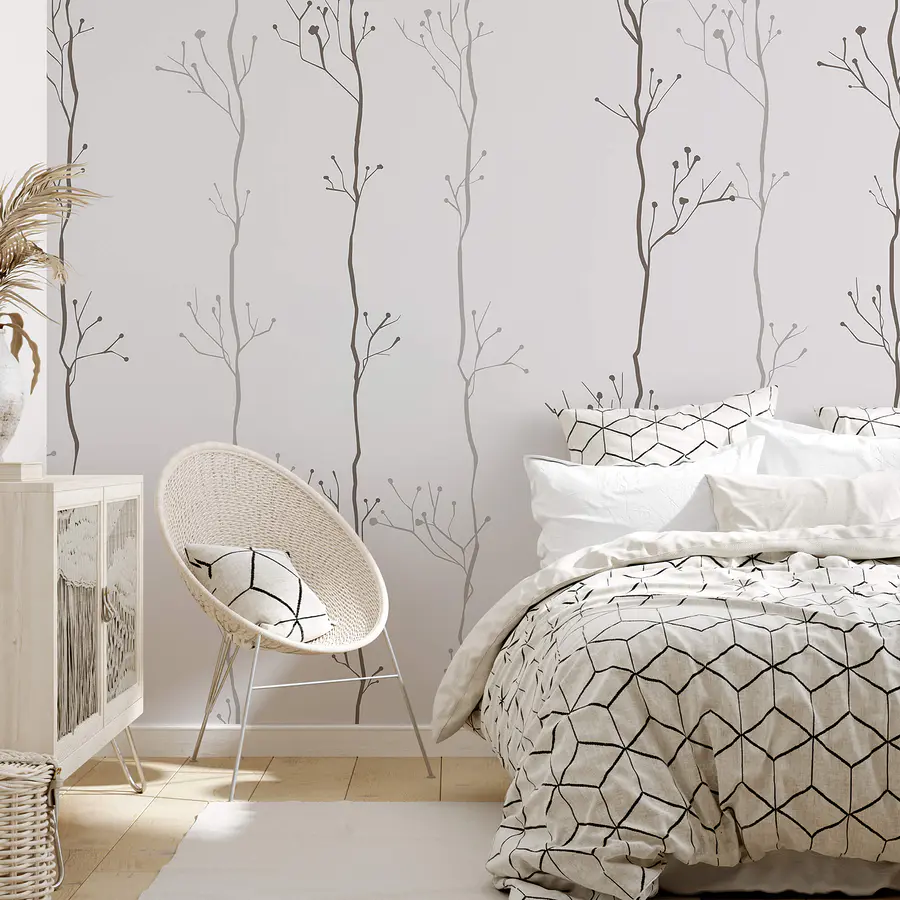 Fotomurales Patrón de ramas sobre fondo blanco