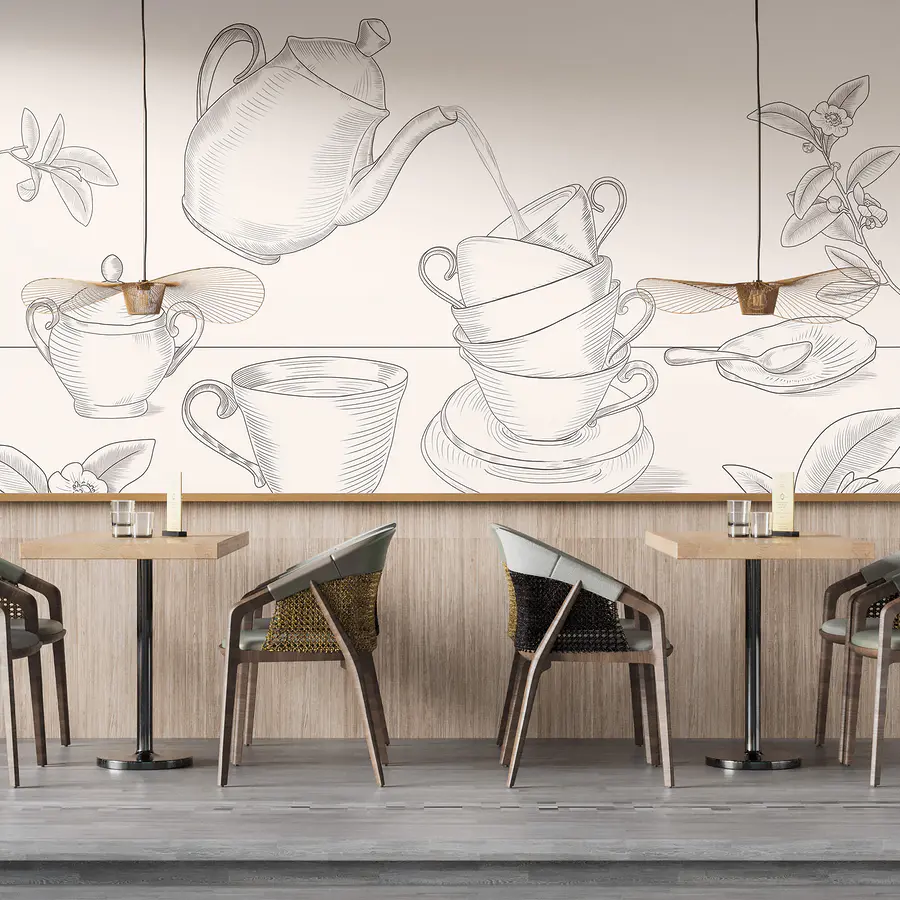 Fotomurales Tetera vertiendo en una pila de tazas de té
