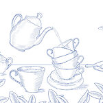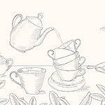 Fotomurales Tetera vertiendo en una pila de tazas de té