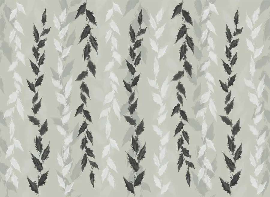 Fotomurales Hojas blancas y negras sobre fondo gris