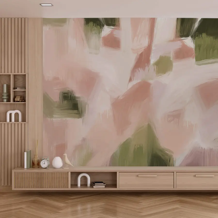 Transforma tu espacio con este impresionante mural que juega con tonos rosas y verdes, creando un fondo relajante a la vez que alegre. Imagina entrar en una habitación donde cada mirada es como un soplo de aire fresco: suave, acogedora y llena de personalidad. Las pinceladas sueltas y expresivas aportan un aire moderno y abstracto a la vez, que invita a la conversación sin llamar excesivamente la atención. Es como si el mural susurrara, invitando a soñar despierto y a disfrutar de acogedoras reuniones. Perfecto para un salón, un dormitorio alegre o incluso un espacio de trabajo creativo, este mural hace que la vida cotidiana se sienta un poco más especial. ¿Quién no querría estar rodeado de tanta belleza? Prepárate para esos momentos de asombro cuando tus amigos te pregunten dónde has encontrado semejante joya.
