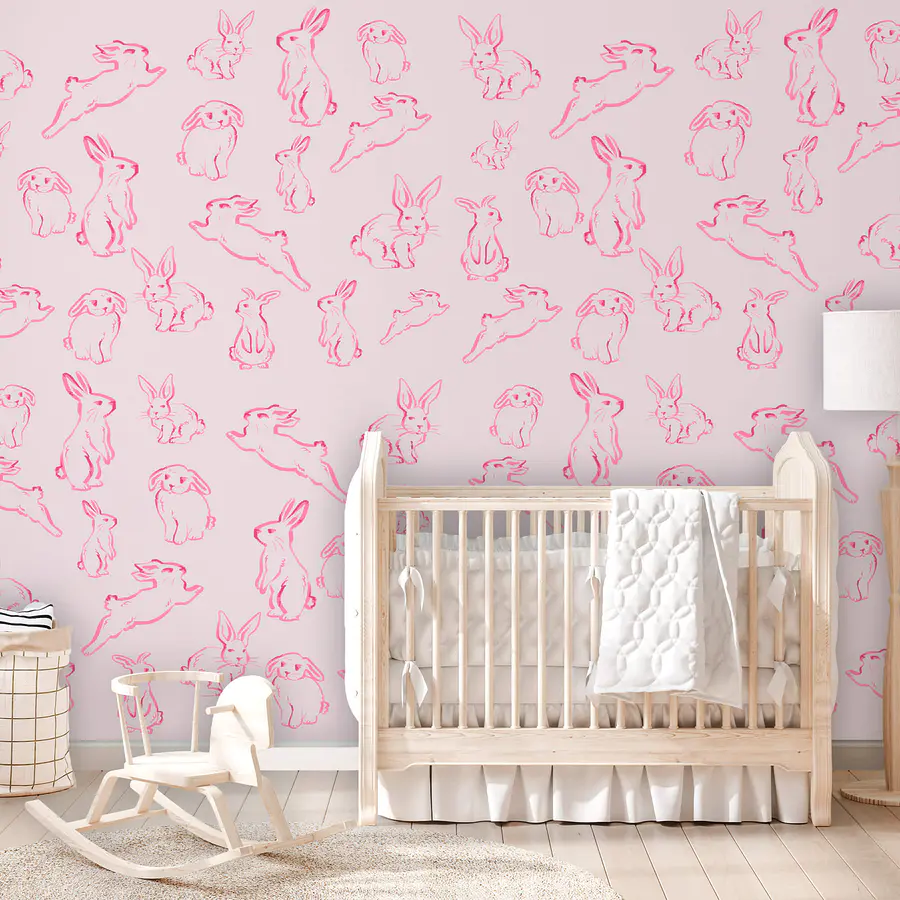 Fotomurales Grupo de conejos dibujados en rosa