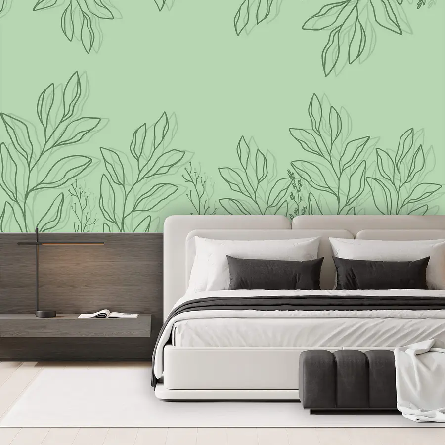 Fotomurales Fondo verde con hojas