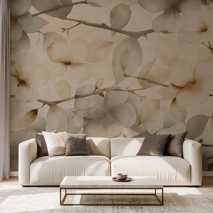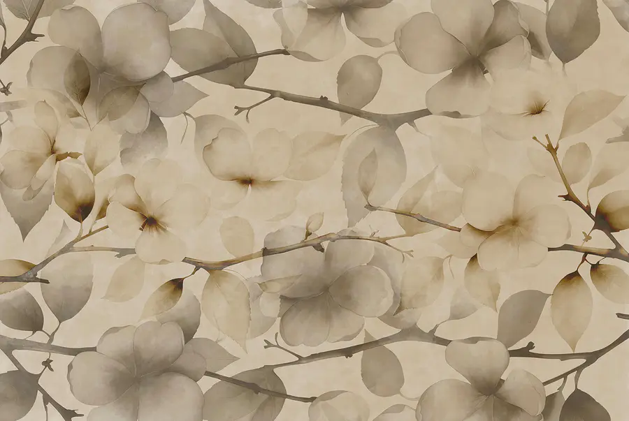 Fotomurales Motivos florales delicados sobre un fondo en tonos apagados