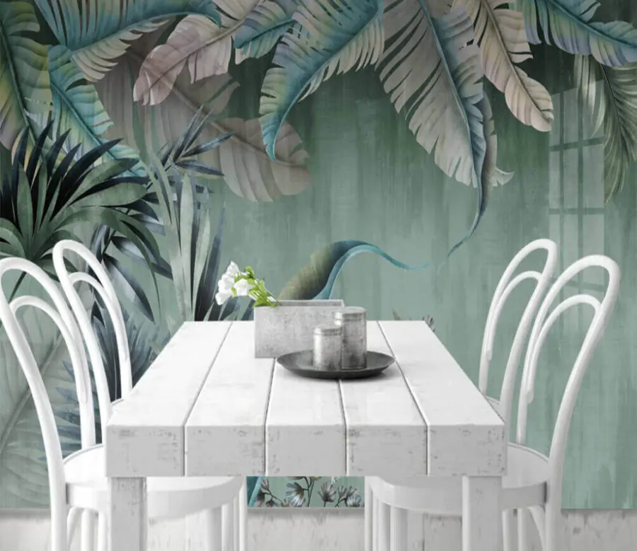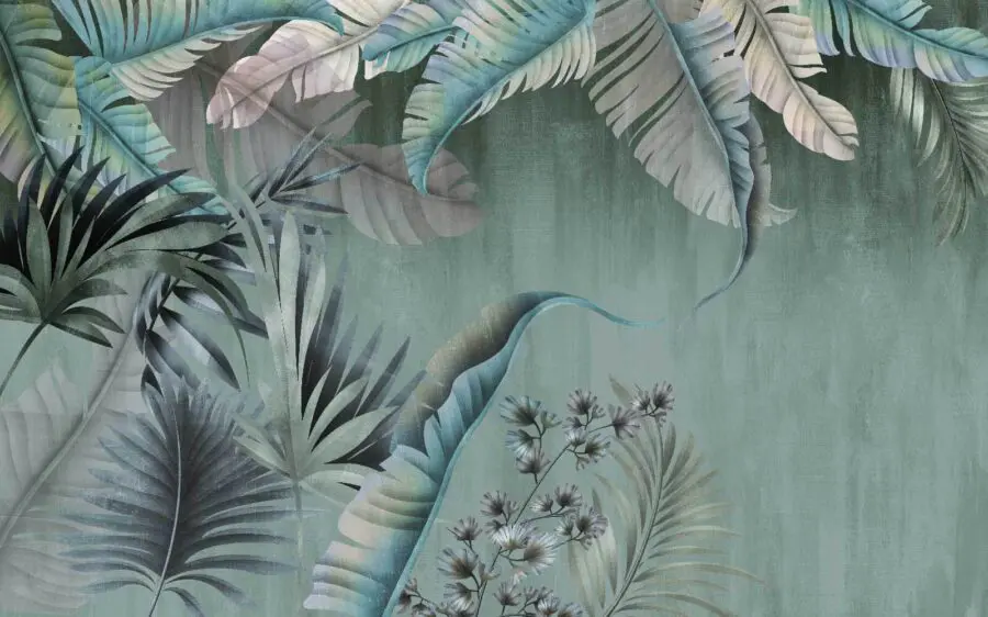Fotomurales Exuberantes hojas tropicales en tonos suaves