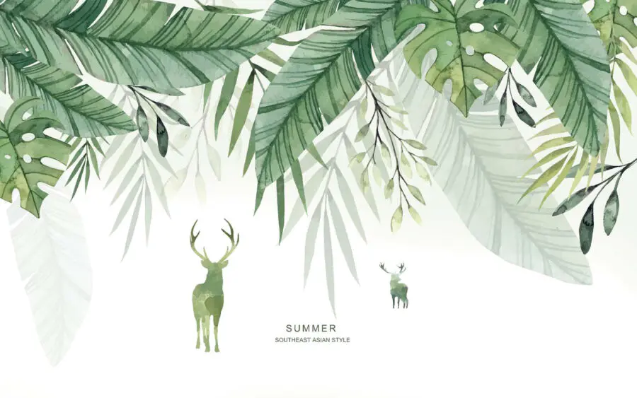 Fotomurales Cuadro en acuarela de un ciervo y hojas