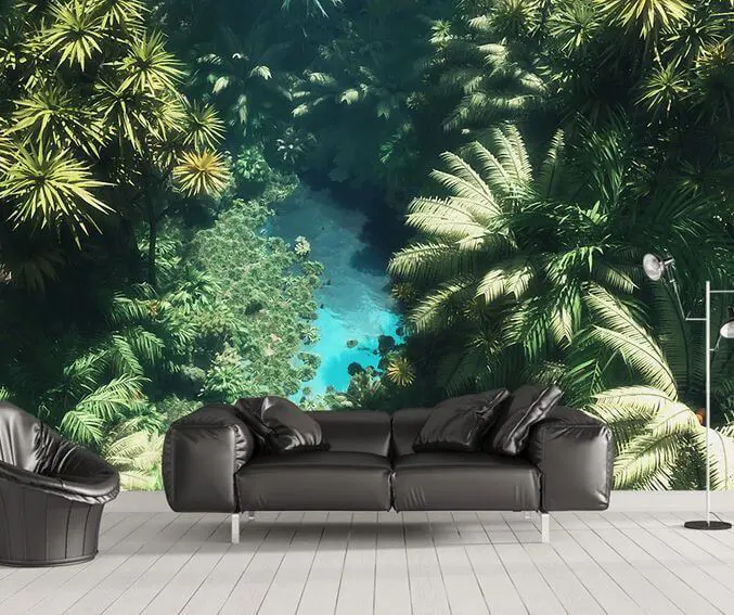 Transforma tu espacio en una escapada serena con los "Murales Río rodeado de árboles". Imagínatelo: una exuberante vegetación rodeando un tranquilo río que te invita a entrar en contacto con la naturaleza sin salir de casa. Es como estar en primera fila de un paraíso tropical, sin los mosquitos, claro. Imagínese acurrucado con un libro, con esos verdes vibrantes alegrándole el día, o tal vez recibiendo a amigos que no pueden dejar de mirarle. Puede que incluso vea alguna que otra ardilla curiosa... ¡a menos que sólo sea el remolino de su imaginación! Con cada mirada, este mural susurra tranquilidad, por lo que es un telón de fondo ideal para conversaciones acogedoras o momentos de reflexión. ¿Quién necesita unas vacaciones cuando sus paredes pueden transportarle a la orilla de un río en el corazón de la selva?