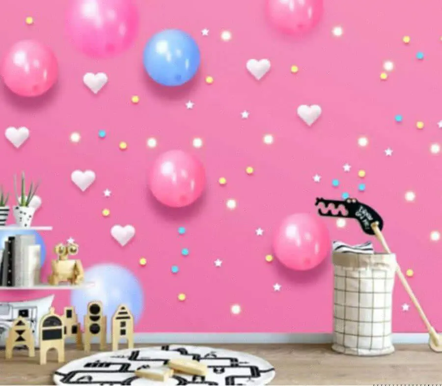 Fotomurales Fondo rosa con globos y estrellas blancas y azules