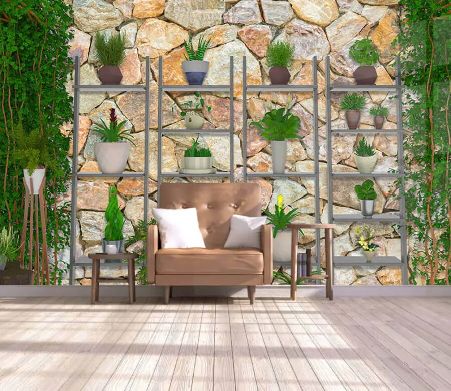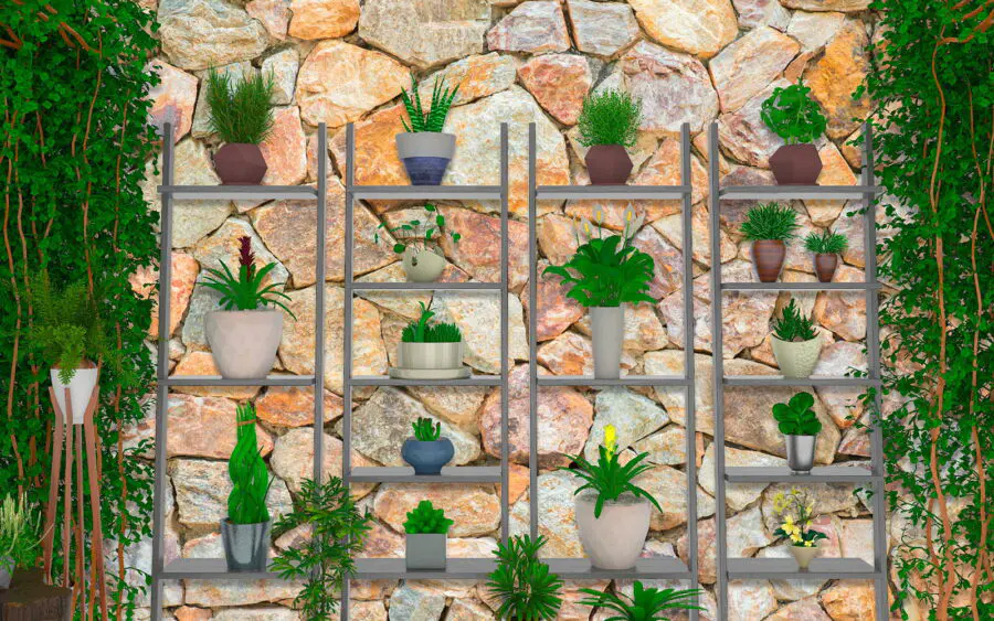 Fotomurales Grupo de plantas en estanterías