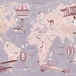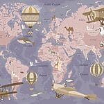 Fotomurales Un mapa del mundo con aviones y globos aerostáticos