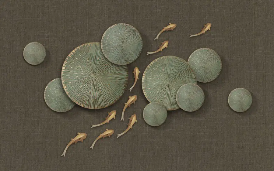 Fotomurales Serena escena de estanque con peces nadando