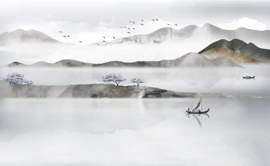 13.88 €8.32 €Fotomurales Barco en el agua con pájaros volando en el cielo