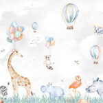 Fotomurales Acuarela de animales y globos