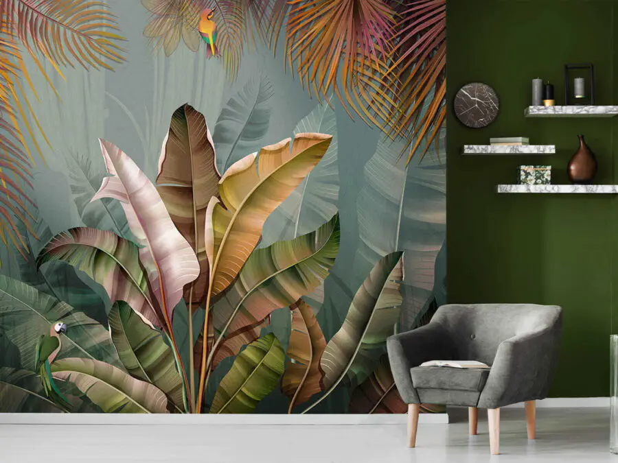 14.39 €7.91 €Fotomurales Bosque tropical con palmeras y un pájaro volando