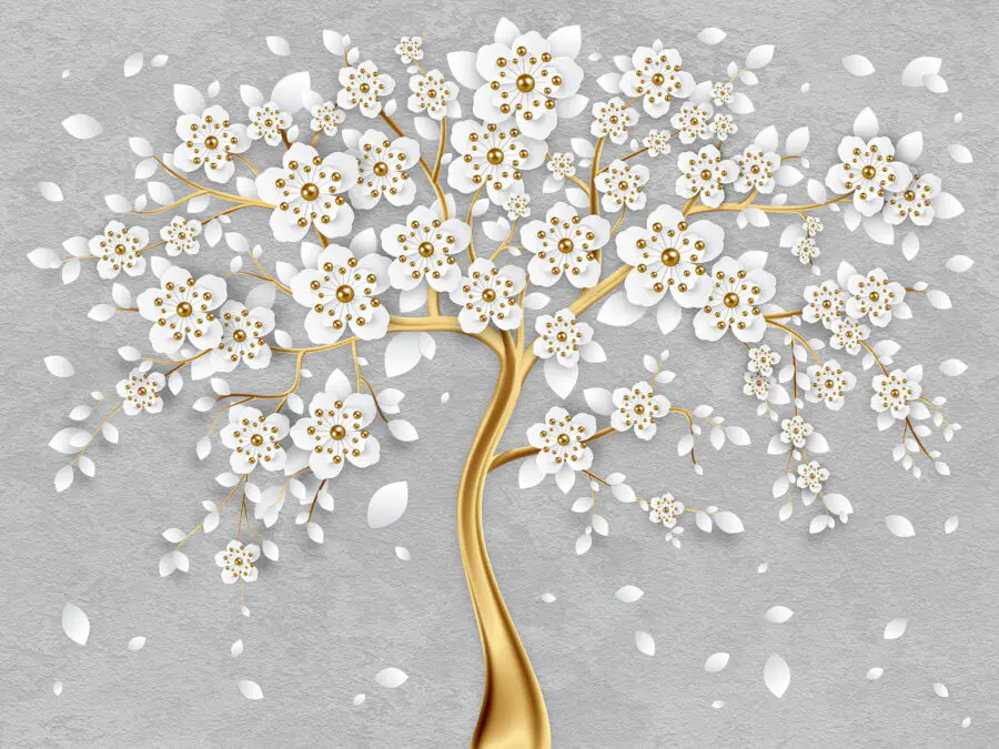 Fotomurales Árbol con flores y hojas blancas