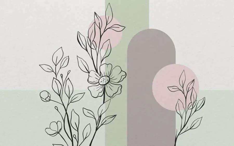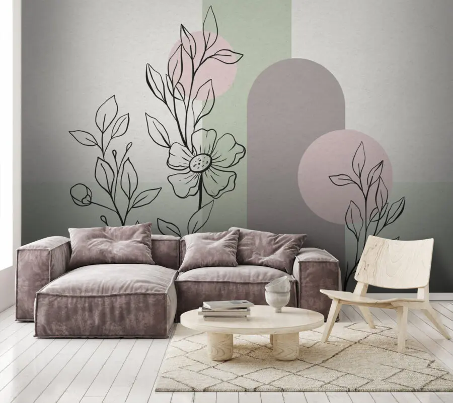 Fotomurales Dibujo de una flor y hojas