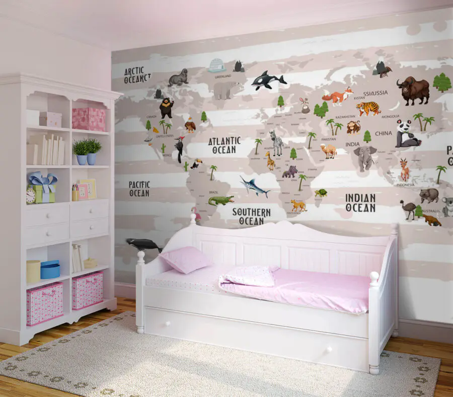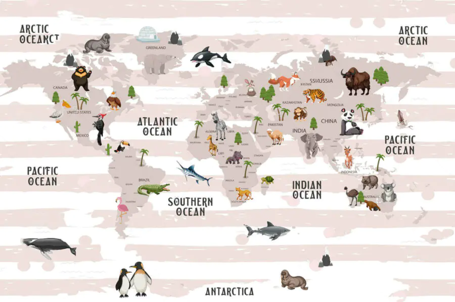 14.39 €7.91 €Fotomurales Un mapa del mundo con animales y globos