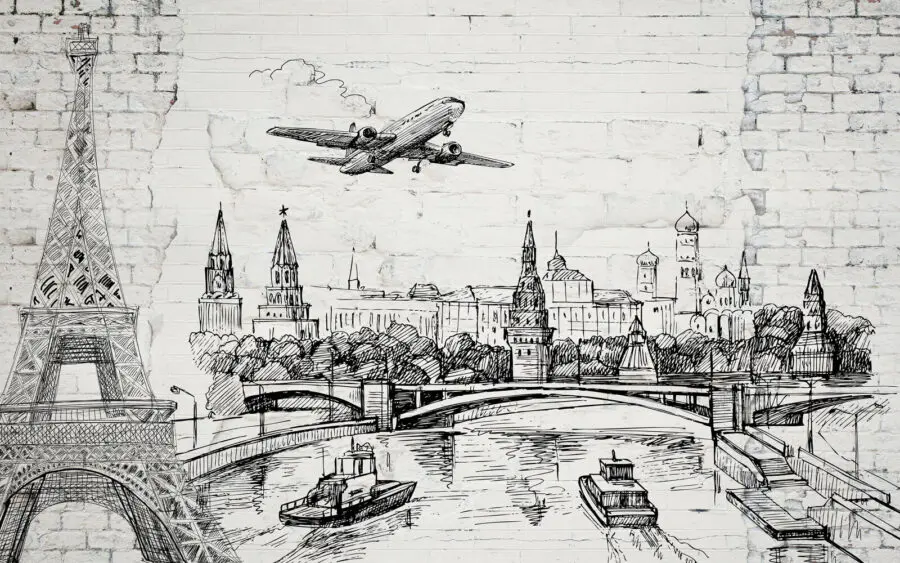 14.39 €7.91 €Fotomurales Grupo de edificios con coches y aviones