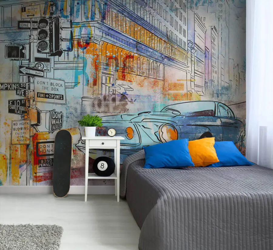 15.14 €8.32 €Fotomurales Dibujo de una calle urbana con coches y edificios