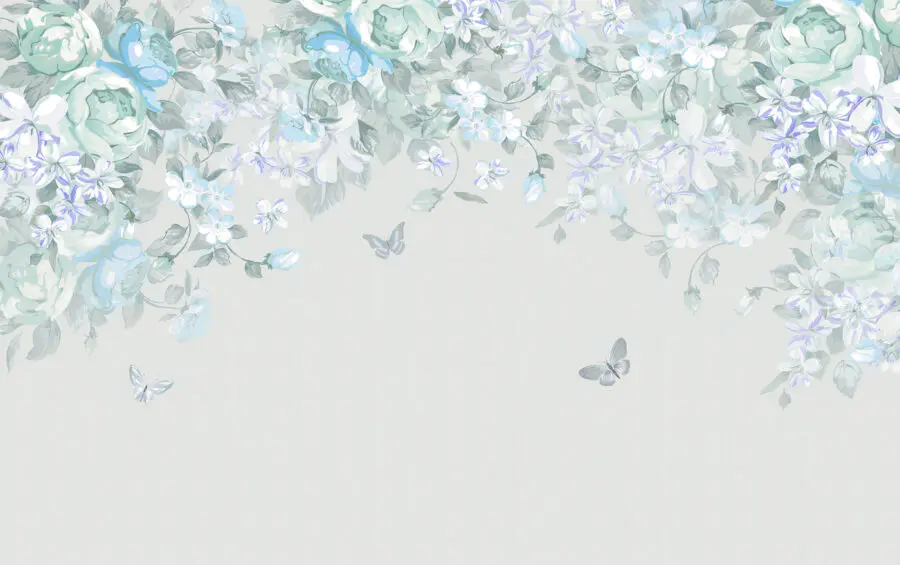 Fotomurales Flores y mariposas blancas y azules