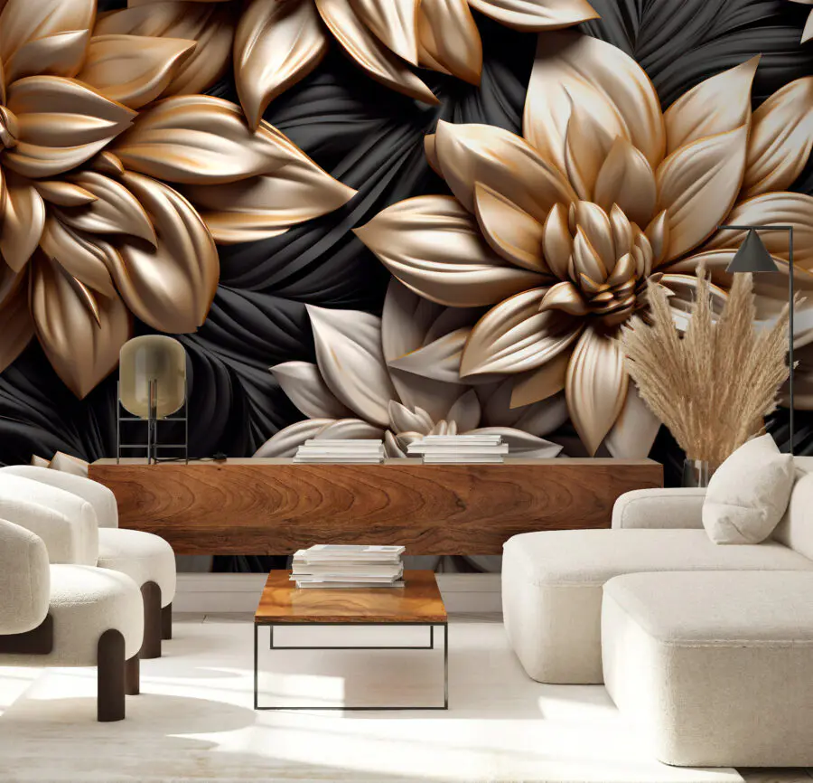 13.88 €8.32 €Fotomurales Elegantes flores monocromas con centros metálicos