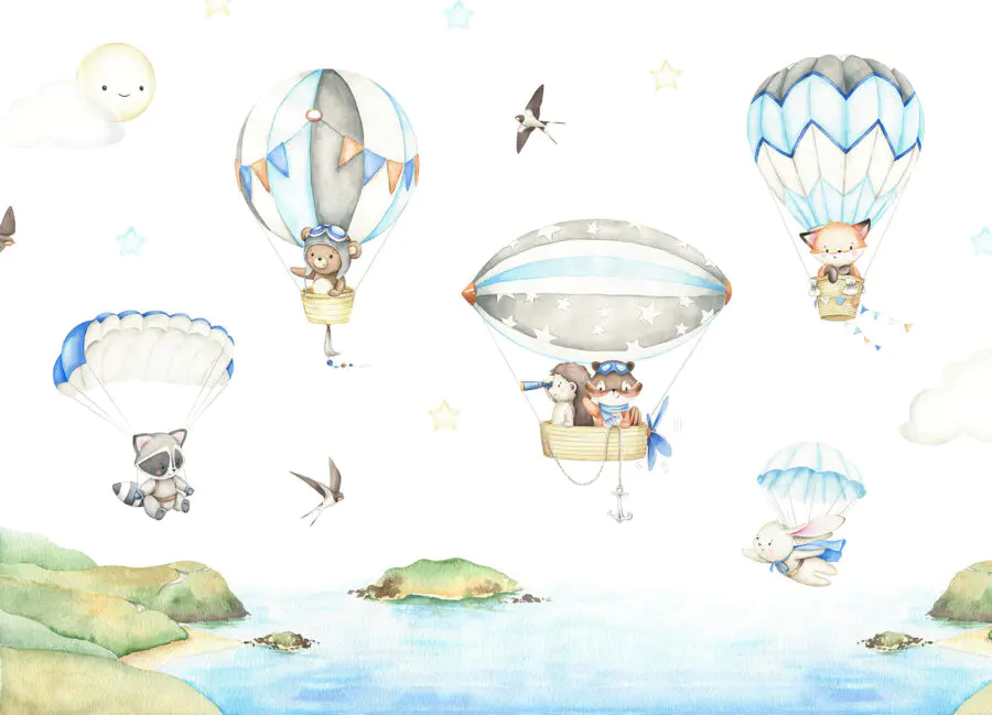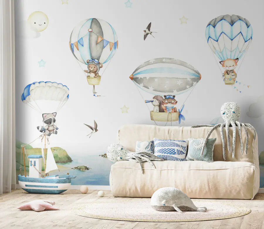 Fotomurales Grupo de animales en globos aerostáticos