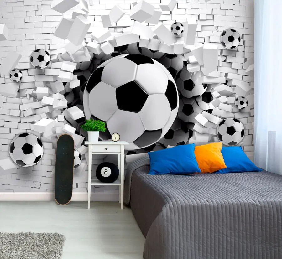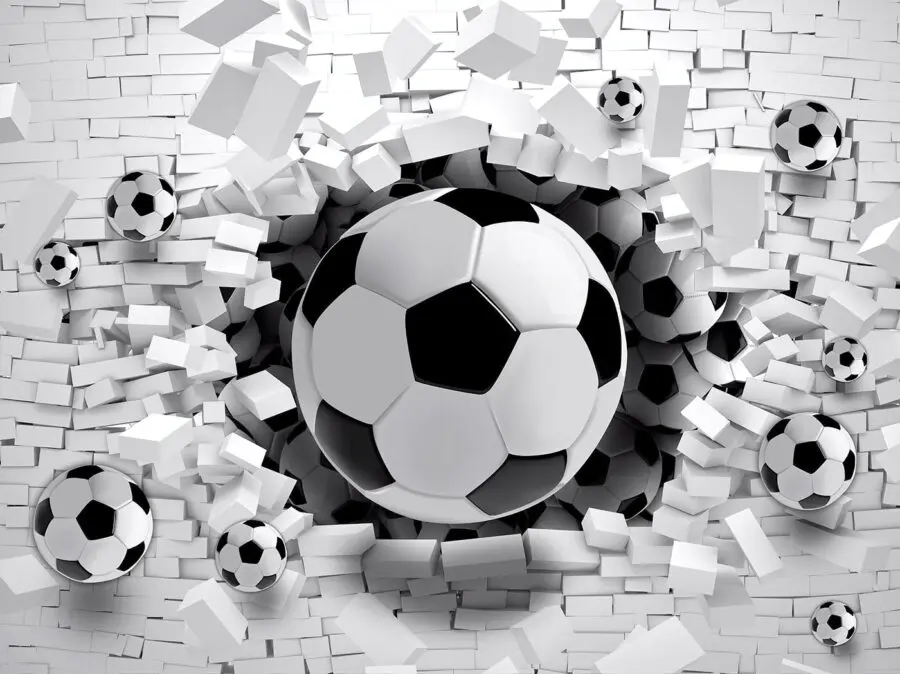 Fotomurales Balón de fútbol que atraviesa un muro de ladrillos