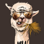 Fotomurales Una llama con gafas de sol y comiendo una hoja