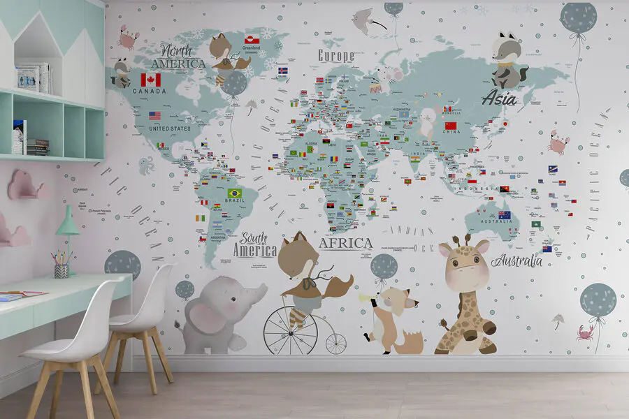 14.60 €8.76 €Fotomurales Un mapa del mundo con animales