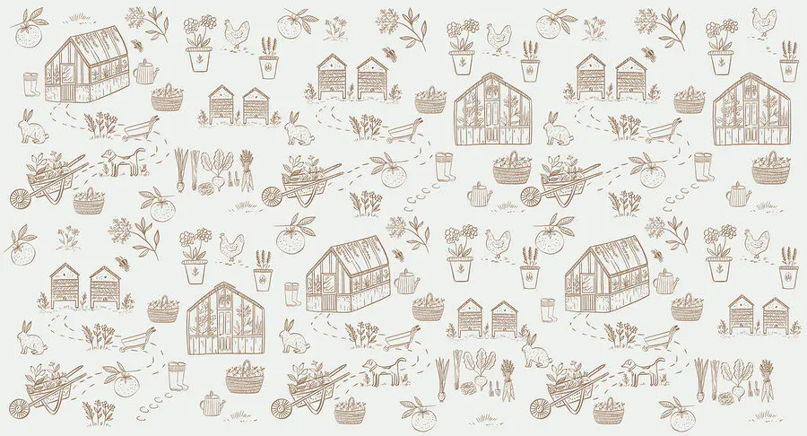 Fotomurales Un patrón de herramientas y plantas de jardinería