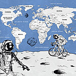Fotomurales Un dibujo de dos astronautas en la Luna