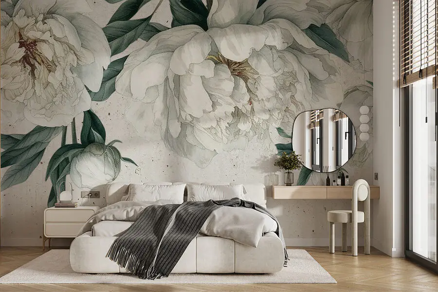 13.88 €8.32 €Fotomurales Pared blanca con flores y hojas