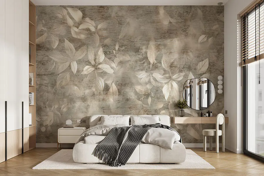 Transforma cualquier espacio con este mural, en el que delicadas hojas danzan sobre un fondo suavemente desgastado. Es como llevar un soplo de aire fresco al interior, sin necesidad de tener un pulgar verde. Imagínese entrar en una habitación y sentirse un poco más ligero sólo porque las paredes están llenas del encanto de la naturaleza. Esos colores suaves son calmantes, casi como si susurraran secretos de tranquilidad. Perfecto para un acogedor rincón de lectura o un elegante espacio de oficina, este mural ofrece un delicioso escape de la rutina diaria. Es el mejor encanto inspirado en la naturaleza, que invita a la calidez y a un toque de elegancia. ¿A quién no le gustaría despertarse rodeado de tanta serenidad?