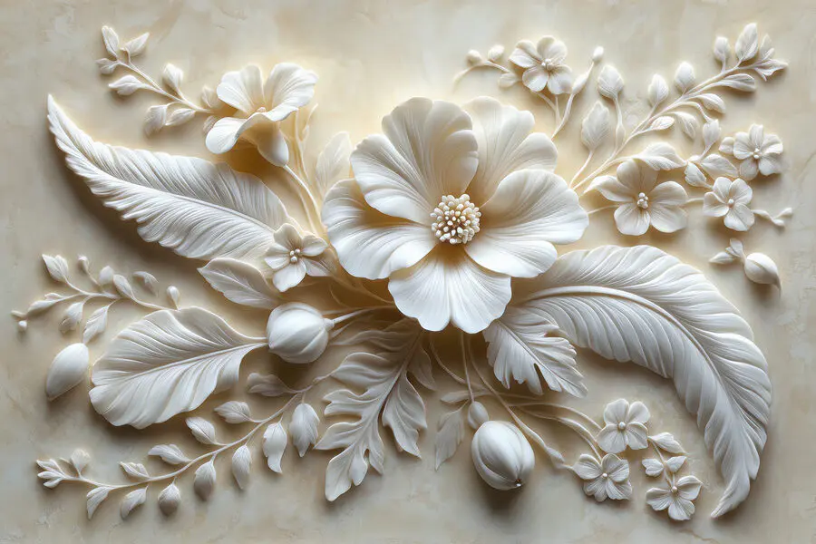Fotomurales Flor y hojas blancas
