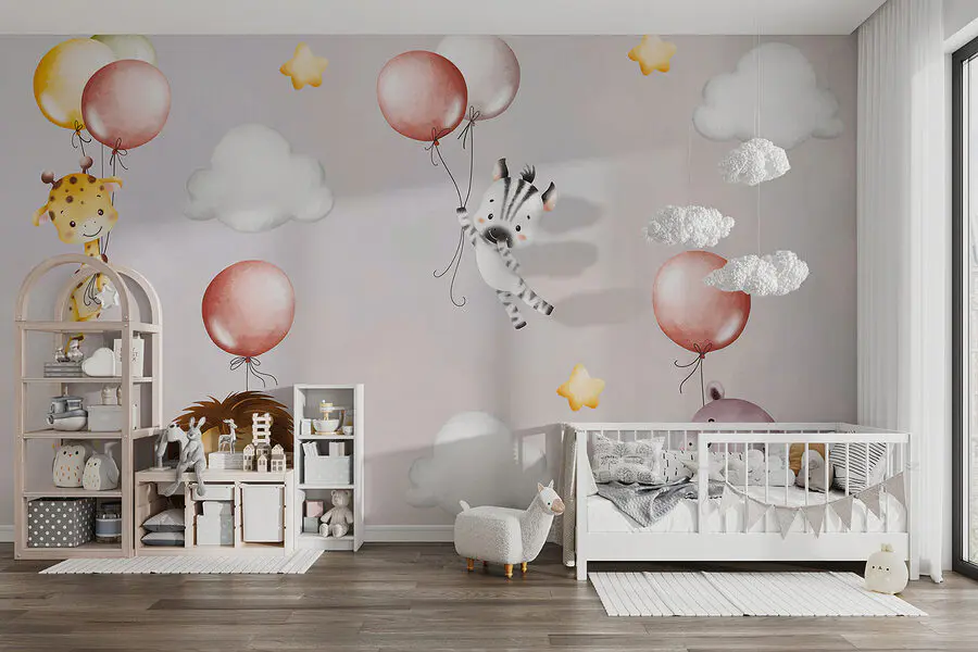 ¿Alguna vez ha soñado con una habitación que parezca una aventura en las nubes? Echa un vistazo a este "Papel pintado mural con animales y globos". Tiene animales dulces y simpáticos: una jirafa, una cebra, un león y un hipopótamo, todos navegando por un cielo lleno de nubes esponjosas y estrellas alegres. Se agarran a globos de colores pastel, ¡demasiado adorables! Perfecto para niños, especialmente para la habitación de una niña, este mural no sólo decora, sino que transforma. Imagine que su hija se despierta con esto cada día. Es como un levantador de ánimo instantáneo, una explosión de alegría que puede hacer sonreír a cualquiera. También es ideal para contar historias: "Mira, ahí está la cebra volando junto a la nube". Ideal para despertar la imaginación y añadir un toque divertido y caprichoso. Los colores son suaves y suaves, no demasiado brillantes, lo que lo hace bastante relajante, especialmente para la hora de dormir. Y seamos sinceros, no es sólo para niños. A cualquier adulto con espíritu juguetón también le encantará. Es un pedacito de magia en la pared, perfecto para hacer que cualquier habitación parezca alegre y acogedora. Imagínate las risitas de los más pequeños señalando al sonriente hipopótamo que flota en el aire.