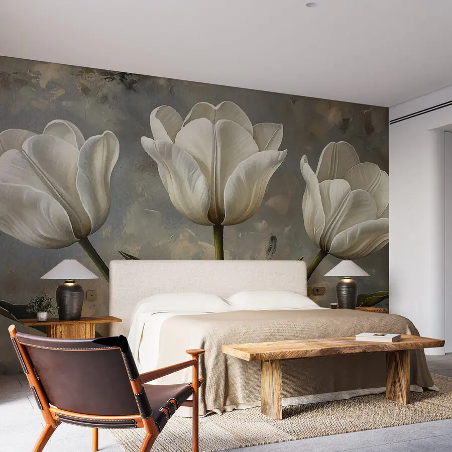Fotomurales Pintura de tulipanes blancos