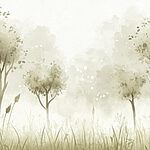 Fotomurales Paisaje brumoso con árboles y hierba
